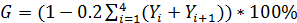 где n - число отрезков, на которые разбиты ось абсцисс и ось ординат (соответственно число точек, по которым строится кривая Лоренца, будет эквивалентно величине n + 1). Находящееся под знаком суммы выражение При расчете индекса Джинни для России формула (1) будет иметь несколько упрощенный вид, принимая во внимание, что n =5, а значение