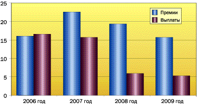 Рис.3 Динамика страхования жизни, млрд. руб. Прогнозами экспертов говорят о том, что российский страховой рынок восстанавливается и вырастет на 6-8 процентов в 2011 году, превысив $20 млрд. руб. Как правило, динамика страхового рынка соответствует темпам роста ВВП. Однако дополнительный импульс рынку может дать появление новых видов обязательного страхования. После аварий на Саяно-Шушенской ГЭС и шахте Распадская, государство решило ввести обязательное страхование опасных промышленных объектов (ОПО), а после пожаров в центральной России - обсуждает введение обязательного страхования имущества. Страхование ОПО вступит в силу в полном объеме в 2012 году и в результате объем страхового рынка увеличится примерно на 5 -10%. В 2010 году государство оказало беспрецедентную помощь пострадавшим от пожаров, это очень важный социальный сигнал, но, в то же время, есть понимание, что нужен рыночный механизм покрытия подобных рисков. Поэтому правительство сейчас прорабатывает закон о введении обязательного страхования имущества. До 2009 года рынок страхования строительных рисков показывал уверенный и стабильный рост до 30% ежегодно. По предварительным данным, объем рынка страхования СМР (строительно-монтажных работ) по итогам 2009 г. составил 12,8 млрд. руб., снизившись по сравнению с 2008 г. на 15%. Снижение произошло как из-за уменьшения уровня инвестиций в жилищном и коммерческом строительстве, связанного с финансовыми трудностями девелоперских компаний, так и с сокращением инвестиций в инфраструктурное строительство. Общее сокращение объема финансирования объектов транспортной инфраструктуры в 2009 г. составило 28%. Нельзя не отметить снижение тарифов на страхование СМР, в целом по рынку падение составило 20-25%. Однако в более долгосрочной перспективе, они должны вернуться к прежнему уровню, что необходимо для восполнения недополученных страховых резервов. В 2009 г. в связи с введением саморегулирования в строительной отрасли, на рынке страхования строительных рисков появился новый сегмент - страхование ответственности членов СРО (саморегулируемых организаций). Одним из перспективных направлений развития страхования СМР по-прежнему остается совершенствование методологии оценки рисков технологически сложных и уникальных строительных объектов. Повышение эффективности страховой защиты, точности «настроек» страхового покрытия может стать способом оптимизации условий договоров страхования и конкурентным преимуществом для страховщиков в условиях падения тарифов, снижения спроса и сужения рынка. Рынок банкострахования сократился на 10% в 2009 году по сравнению с 2008 годом, а общий объем рынка составил 81 млрд. рублей. Розничное банкострахование в 2009 году сократилось на 11%, страхование юридических лиц через банки – на 9%, страхование рисков банков – на 2%. Объемы этих секторов составили соответственно 62,3, 14,7 и 4 млн. рублей. По сравнению со значительными объемами «свернутого» кредитования, рынок банкострахования удержался от резкого падения благодаря поступлению страховых премий по среднесрочным и долгосрочным договорам, заключенным до кризиса. По мнению «Эксперт РА», наиболее перспективными видами банкострахования в следующие годы, кроме популярных розничных видов, будут страхование залогов, товаров и имущества юридических лиц через банки, а также