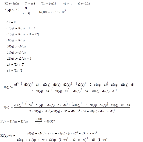 Второе условие требует выбора петлевого усиления таким образом, чтобы амплитуда ошибки, вызванной действием гармонического воздействия l(t), не превышала заданного значения. При этом амплитуда Lм эквивалентного динамического воздействия и его частота W определяются из системы уравнений: