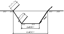 Поскольку ширина торцевой проходки больше ширины траншеи поверху то траншею можно разрабатывать за одну торцевую проходку. 6. Определение объёмов бетонных работ