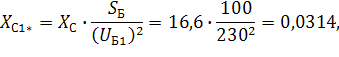 7.2 Расчёт параметров схемы замещения в относительных единицахРасчёт производим с использованием относительных единиц с приближённым приведением параметров схемы замещения. Активными сопротивлениями элементов схемы пренебрегаем. Принимаем следующие базисные величины: