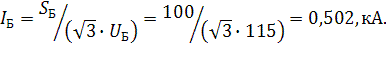 7.3 Расчёт максимального тока трёхфазного короткого замыканияМаксимальных ток к.з. рассчитывается при условии работы всех элементов (трансформаторов и линий) схемы. По условию ток к.з. рассчитываем по обоим концам защищаемых линий