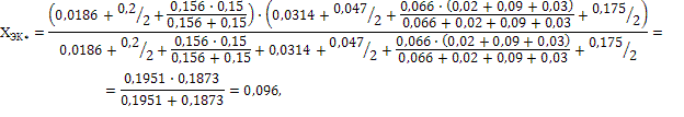 Рисунок 7.3.2 Схема замещения для расчёта тока к.з. в точке где: