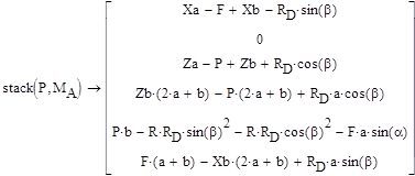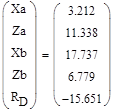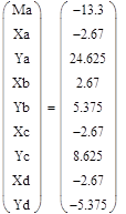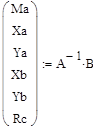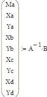 Составив уравнения для каждой части конструкции, запишем коэффициенты при неизвестных реакциях в матрицу A. Все известные величины запишем в матрицу-столбец B. Тогда матрица-столбец Х из неизвестных реакций будет вычисляться по формуле: