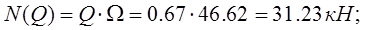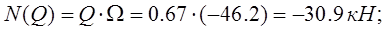 где Q=0.24 кН – распределенная нагрузка; W - площадь, ограниченная линией влияния (заштрихованная область).