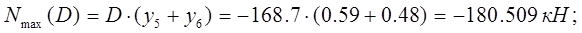 где Nmax – максимальное усилие в стержне; Nmin – минимальное усилие в стержне; N(Q) – усилие в стержне от распределенной нагрузки; N(QG) – усилие в стержне от распределенной горизонтальной нагрузки; N(DG) – усилие в стержне от горизонтальной инерционной нагрузки; Nmin (D) – минимальное усилие от силы давления колес тележки в стержне; Nmax (D) – максимальное усилие от силы давления колес тележки в стержне.