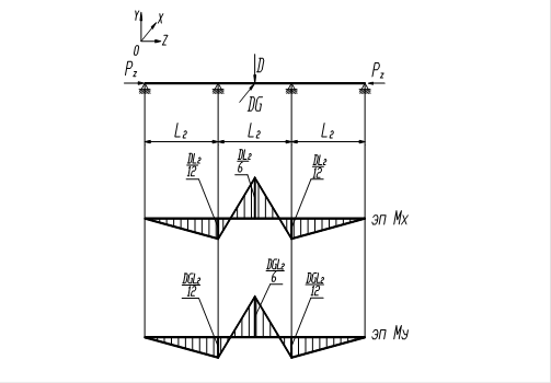 Pz =1246 кН; L2 =1300 мм; D=168,7 кН; DG=20,2 кН; ρ=0.0193; Материал: ВСт3сп; Расчетная группа по СНиП 4-я Рис. 5.1. Схема нагружения верхнего пояса главной фермы.