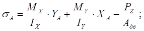 где Мх – изгибающий момент относительно оси X; Му – изгибающий момент относительно оси Y; Определение необходимой площади: