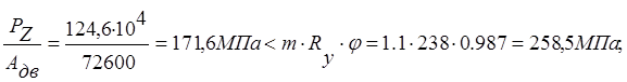Где φ=0.931 – коэффициент понижение допускаемых напряжений (выбирается в зависимости от λх и Rу по СНиП табл.72);
