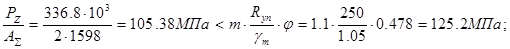 где φ=0.419 – коэффициент понижение допускаемых напряжений (выбирается в зависимости от большей λ и Rу по табл.72 СНиП);