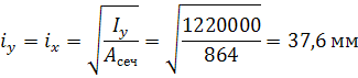 Проверочный расчет общей устойчивости: Определяем гибкость стержня: Момент инерции должен быть достаточным, для обеспечения гибкости менее 120. Расстояние между уголками принимаем равным b=6 мм.