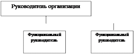 Рис.1 Линейная организационная структура Два руководителя не могут непосредственно связываться друг с другом, они должны это сделать через ближайшую вышестоящую инстанцию. Такую структуру часто называют однолинейной. Преимуществами такой структуры можно назвать: - простое построение; - однозначное ограничение задач, компетенции, ответственности; - жесткое руководство органами управления; - оперативность и точность управленческих решений. Недостатки: - затруднительные связи между инстанциями; - концентрация власти в управляющей верхушке; - сильная загрузка средних уровней управления. Линейная структура управления используется мелкими и средними фирмами, осуществляющими несложное производство, при отсутствии широких кооперационных связей между предприятиями. 1.3.2. Функциональная организационная структура.Эта структура основана на создании подразделений для выполнения определённых функций на всех уровнях управления. К таким функциям относят исследования, производство, сбыт, маркетинг и т.д. Здесь с помощью директивного руководства могут быть соединены иерархически нижние звенья управления с различными более высокими звеньями управления. Передача поручений, указаний и сообщений осуществляется в зависимости от вида поставленной задачи.