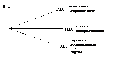 Процесс производства несёт не одноразовый характер, а непрерывно возобновляемый, т.е. этот непрерывный процесс, протекающий в постоянном повторении и возобновлении потребляемых товаров, называется воспроизводством . Каждый цикл воспроизводства имеет и потребляет в процессе создания нового продукта рабочую силу, станки, оборудование, сырьё и капитал, между которыми должны быть соблюдены определённые пропорции. Нарушение этих пропорций в организации производства, ведёт к сбою и снижению эффективности. Воспроизводство может быть простым, расширенным и зауженным. Простое воспроизводство – это непрерывно повторяющийся процесс, при котором количество и качество создаваемого продукта и величина действующего капитала на определённом промежутке времени остаётся неизменным.