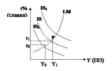 C + I + G + XН – чистый экспорт, то ВНП равно N2 и точка Е2 при этом экономика постепенно приближается к FF, т.е. полной занятости, но это достижимо по средствам эффекта мультипликатора. Общее равновесие на реальном и денежном рынке. Кривые IS – LM .