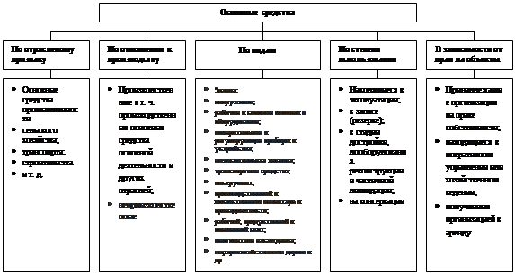 Рис.1.1 Классификация основных средств Активы, в отношении которых выполняются условия по отнесению объектов к основным средствам, и стоимостью в пределах лимита, установленного в учетной политике организации, но не более 20 000 руб. за единицу, могут отражаться в бухгалтерском учете в составе материально-производственных запасов. Различаю первоначальную, остаточную и восстановительную стоимость основных средств. В бухгалтерском учете основные средства отражаются, как правило, по первоначальной стоимости, которая определяется для объектов: · изготовленных на самом предприятии, а также приобретенных за плату у других организаций и лиц – исходя из фактических затрат по возведению или приобретению этих объектов, включая расходы по доставке, монтажу, установке; · внесенных учредителями в счет их вкладов в уставный капитал (фонд) – по согласованной с учредителями стоимости; · полученных от других организаций и лиц безвозмездно, а также неучтенных объектов основных средств – по рыночной стоимости на дату оприходования; · приобретенных по договорам, предусматривающим исполнение обязательств (оплату) неденежными средствами – по стоимости ценностей, переданных или подлежащих передаче организацией. Восстановительная стоимость образуется при переоценке объектов основных средств (доведении стоимости объектов до рыночных цен). Право на переоценку основных средств имеют коммерческие организации, но она может проводиться не чаще одного раза в год (как правило, на начало отчетного года). Изменение первоначальной стоимости основных средств допускается в случаях достройки, дооборудования, реконструкции, частичной ликвидации и переоценки соответствующих объектов. Остаточная стоимость амортизируемого имущества определяется вычитанием из его первоначальной или восстановительной стоимости суммы начисленных амортизационных отчислений (накопленной амортизации). Стоимость основных средств, по которой они отражаются в бухгалтерском учете (т. е. первоначальную, а после переоценки, проводимой в установленном порядке, - восстановительную), принято называть балансовой стоимостью. Для оценки основных средств могут также использоваться: страховая стоимость – величина страховой оценки объектов, подверженных риску повреждения, утраты или уничтожения. Страховая стоимость определяется на основании договора страхования имущества организации; ликвидационная стоимость – возможная стоимость продажи объектов основных средств в конце срока их полезного использования или годных строительных и других материалов, узлов, запасных частей, колесных пар и др., полученных от ликвидационных активов. рыночная стоимость – стоимость, по которой активы могут быть куплены или проданы на отчетную дату в условиях рынка, т.е. по действующим в отношении аналогичных активов рыночным ценам. Единицей бухгалтерского учета основных средств является инвентарный объект, т. е. объект со всеми приспособлениями и принадлежностями или отдельный конструктивно-обособленный предмет, предназначенный для выполнения определенных самостоятельных функций или их обособленный комплекс конструктивно сочлененных предметов, представляющих собой единое целое, предназначенных для выполнения определенной работы. 1.2 Цели и задачи анализа эффективности использовани