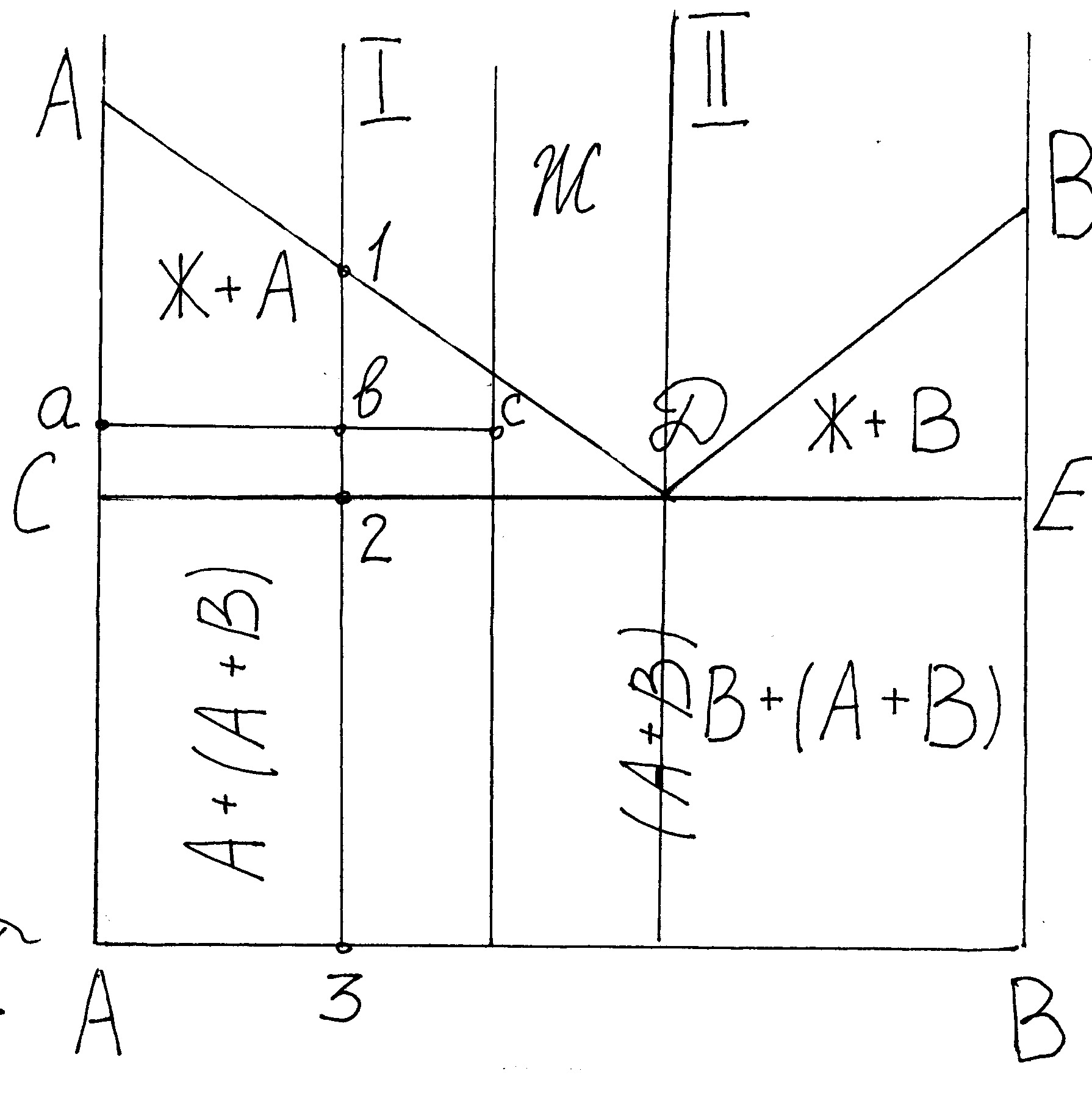 иаграммы состояния строятся в координатах t-оси ординат и концентрация компонентов – ось абсцисс. Линия АДВ – линия ликвидус. а представляет собой геометрическое место точек соответствующих температурам, при которых из жидкости начинают выпадать кристаллы, следовательно выше линии ликвидус сплав находится в жидком состоянии. Линия СДЕ называется солидус. Она представляет собой геометрическое место точек, соответствующих температурам, при которых жидкая фаза исчезает, следовательно ниже линии солидус сплав находится в твердом состоянии. Между линиями ликвидус и солидус сплав находится в жидко- твердом состоянии, и чем ниже температура относительно линии ликвидус, тем больше кристаллов и меньше жидкой фазы в сплаве. В точке Д из жидкости одновременно начинают выпадать кристаллы компонентов (фаз). Для диаграмм этого типа компонент и фаза являются синонимами. Для диаграмм другого типа необходимо говорить только о фазах, поскольку компонент и фаза не являются синонимами. Механическая смесь, состоящая из двух или более фаз, одновременно кристаллизующаяся в жидкости называется эвтектикой. Ниже точки Д на диаграмме структура представляет собой чисто эвтектической.