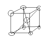 2.Объемно-центрированная кубическая решетка (ОЦК) представляет собой также куб, внутри которого дополнительно расположен еще один атом.