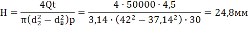 Барабан отлит из чугуна СЧ15-32 с пределом прочности на сжатие σв =700 МПа. Толщину стенки барабана определяют из расчета на сжатие: