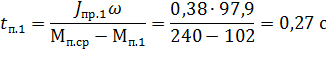 δ – коэффициент, учитывающий моменты инерции масс деталей, вращающихся медленнее, чем вал двигателя, принимают δ=1,05…1,25; в нашем случае 1,2;