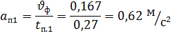Фактическое ускорение привода незагруженной опоры А: