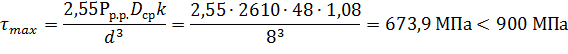 где γ=0,8– коэффициент, учитывающийпеременность нагрузки [2, табл. 33]; Значение местных напряжений смятия при линейном контакте