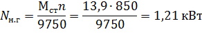 Исходя из пускового момента, мощность двигателя: