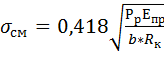 Величина местных напряжений смятия при точечном контакте: