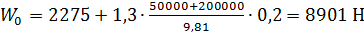 Для предварительного выбора двигателя определим сопротивление передвижению загруженного крана: