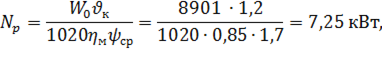 Расчетная мощность редуктора: