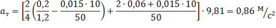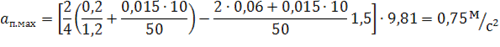 При торможении тележки без груза допустимое максимальное ускорение, при котором обеспечивается запас сцепления колес с рельсами 1,2; определяем по формуле