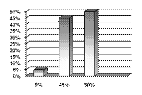 45% (9 человек) – движения артикуляционного аппарата выполнены в полном объеме; 50% (10 человек) – движения артикуляционным аппаратом выполнены в не полном объеме; 5% (1 человек) – движения не выполнены Из данной гистограммы видно, что 50 % и это большинство, движения артикуляционным аппаратом выполняют в не полном объеме Гистограмма 7 Распределение испытуемых (процентах) в зависимости от нарушения речи