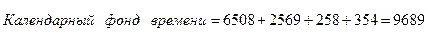Календарный фонд времени рассматриваемого предприятия составляет 9689 дней, с учетом выходных и праздничных дней число рабочих дней (табельный фонд) составило 7120 дней, так же учитывая, очередные отпуска, получаем, что фактически число рабочих дней предприятия (максимально возможный фонд) составляет 6862 дня.