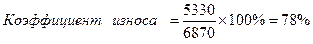 При сумме износа основных фондов равной 5330 тыс. руб., утрата основными фондами потребительских свойств и стоимости в процессе эксплуатации составила 78%.