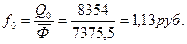 При средней стоимости основных фондов 7375,5 тыс. руб. в базисном периоде на каждый рубль стоимости основных фондов приходилось 1,13 рубля стоимости продукции, в текущем периоде этот показатель увеличился на 0,17 рубля и составил 1,30 рублей стоимости продукции.