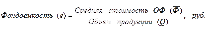 Фондоемкость продукции является показателем, обратным как по отношению к фондоотдаче, так и, следовательно, по отношению к эффективности производства. Характеризует среднюю стоимость ОФ, привлеченных для производства каждого рубля продукции.