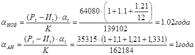 5. Расчет периода возврата единовременных затрат и прибыли предприятияПериод возврата единовременных затрат Тр определяется последовательным сложением величин (Рt -Ht ) *αt до момента, пока получаемая сумма не сравняется с величиной единовременных вложений, приведенных к расчетному году. Период возврата сопоставляется с продолжительностью расчетного периода Тн (должно выполняться условие Тр <Тн ). Период возврата единовременных затрат составляет: