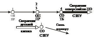 4.1. Разработка схемы базирования сборочной единицы Детали в сборочное положение устанавливают по базам – поверхностям на деталях и элементах сборочного приспособления. Точность изготовления деталей изделия, образование на них базовых поверхностей и точность изготовления сборочного приспособления является важнейшим условием получения требуемой формы и размеров узлов, отсеков и агрегатов. В самолетостроении детали, узлы, отсеки и агрегаты базируют по: СО, КФО, ПК, НП, ВП, ОСБ, УБО. В ряде случаев вместо УБО используют ТСО. Схемы базирования указывают, какие точки, линии или поверхности деталей приняты в качестве сборочных баз, как и в каком количестве они располагаются на деталях, в какой последовательности изменяются по этапам сборки. Графическое изображение сборочных баз на схеме базирования осуществляется с помощью условных обозначений, отвечающих различным конструктивным решениям базовофиксирующих элементов приспособления. Схемы базирования дают конструктору информацию о размещении базовых элементов приспособления и их конструкции в зависимости от вида реализуемых баз. При разработке схемы базирования необходимо стремиться к соблюдению трех основных принципов: единства, постоянства и совпадения баз. В целях соблюдения принципа единства баз следует за базовые оси приспособления, относительно которых координируются базовые элементы, принимать конструктивные оси изделия. Принцип постоянства баз заключается в соблюдении общности основных базовых осей для узловых, панельных, секционных сборочных приспособлений, относящихся к данному агрегату. Принцип совпадения баз предполагает, что при изготовлении, детали и ее установке в сборочное приспособление попользуются одни и те же ее поверхности в качестве баз. Соблюдение этих принципов обеспечивает наиболее высокую точность сборки. В данной работе в качестве базы приняты поверхности деталей каркаса, опорные поверхности СП и СО.