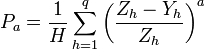 где P — общий показатель бедности; a — параметр, показывающий о каком именно показателе бедности идет речь; Zh — черта бедности отдельного домохозяйства h , которая зависит от его состава; Yh — уровень дохода отдельного домохозяйства h ; q — количество бедных домохозяйств; H — общее количество домохозяйств. На основе формулы Фостера-Гриера-Торбеке определяются основные показатели бедности: · коэффициент бедности и уровень бедности (a = 0); · индекс глубины бедности (a = 1); · индекс остроты бедности (a = 2). Коэффициент бедности
