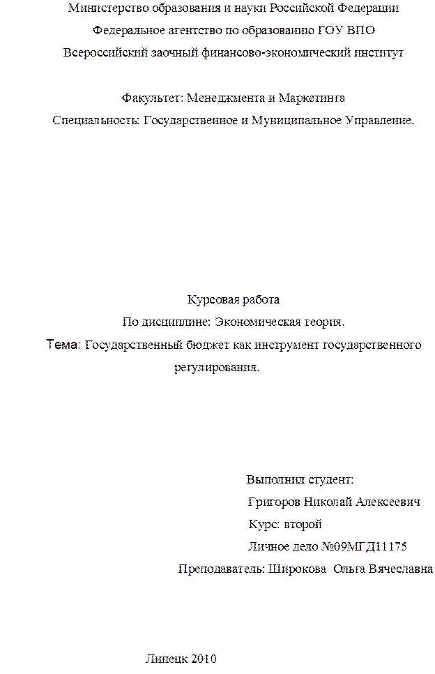 Реферат: Государственный бюджет как инструмент государственного регулирования 6