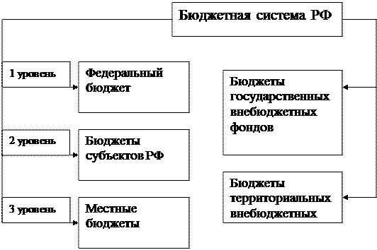 Рисунок 1. Уровни бюджетной системы РФ Бюджетная система в первую очередь определяется действующим государственным устройством. В унитарных (единых) государствах бюджетная система включает два звена: государственный бюджет и многочисленные местные бюджеты. В федеративных же государствах, каковым является Россия, бюджетная система состоит из трех звеньев: государственный бюджет (или федеральный бюджет, или бюджет центрального правительства); бюджеты членов федерации (штатов – в США, земель – в ФРГ, провинций – в Канаде, субъектов Федерации – в России); местные бюджеты [8; стр. 85]. 1. Федеральный бюджет решает такие задачи как национальная оборона, обустройство и охрана государственных границ, фундаментальные научные исследования; 2. Задачи, решаемые на уровне субъекта Федерации: финансирование приоритетных для данного региона экономических программ, жилищно-коммунальное хозяйство; 3. На местном уровне решают следующие задачи: содержание органов местного самоуправления, спорт, культура. При этом бюджеты нижестоящих органов самоуправления не входят своими доходами и расходами в бюджеты вышестоящих уровней, т.е. бюджеты субъектов РФ не включаются в федеральный бюджет, а местные бюджеты не включаются в региональные бюджеты. Совокупность бюджетов всех уровней образует консолидированный бюджет, который определяется Бюджетным кодексом как свод бюджетов всех уровней на соответствующей территории. Консолидированный бюджет субъекта РФ составляют бюджет самого субъекта и свод бюджетов находящихся на его территории муниципальных образований Консолидированный бюджет РФ – это федеральный бюджет и консолидированные бюджеты всех субъектов федерации. Консолидированные бюджеты позволяют получить полное представление обо всех доходах и расходах региона или страны в целом, они не утверждаются и служат для аналитических и статистических целей [13; стр. 97]. Бюджетная система России состоит из федерального бюджета, 21 республиканского бюджета республик в составе РФ, 56 краевых и областных бюджетов, включая одну автономную область, городских бюджетов Москвы и Санкт-Петербурга, 10 окружных бюджетов автономных округов и около 29 тыс. местных бюджетов, к которым относятся городские, районные, поселковые и сельские бюджеты. Государственный бюджет выполняет следующие основные функции: распределительную; контрольную; стимулирующую; социальную; функцию по обеспечению существования государства. Проявление распределительной функции обусловлено тем, что происходит концентрация денежных средств в руках государства, далее эти средства распределяются и перераспределяются между отдельными отраслями и сферами деятельности, между отдельными слоями населения и между некоторыми видами услуг. В результате формируются различные фонды денежных ресурсов (государственные, местные бюджеты, пенсионные фонды, фонды социальной защиты и др.). Стимулирующая функция проявляется в том, что государство, регулируя экономические отношения (с помощью распределительной функции), способно усиливать или сдерживать темпы роста производства, изменять структуру спроса и предложения, т.е. воздействует на экономику в зависимости от ситуации в стране. Социальная функция проявляется в финансировании социальных программ, направленных на развитие здравоохранен