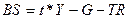 BS - это профицит в условиях полной занятости Y - доход при полной занятости Разница между фактическим профицитом и бюджетным избытком при полной занятости предоставляет собой налог. Разница указывает на присутствие экономического спада. Если производство ниже уровня полной занятости, профицит при полной занятости будет превышать фактический профицит (возможно также, что при объемах производства ниже уровня полной занятости будет иметь место дефицит бюджета) [9; стр. 113].