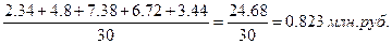 Рассчитываем по данной формуле величину интервала при n=5; Xmax=0,87млн.руб; Xmin=0,77млн.руб: