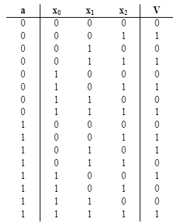 3.2 Минимизация функции выходов автомата С использованием закодированных состояний, строится таблица истинности для выходов автомата. Отсутствующие выходы для не существующих закодированных состояний обозначаются *. Таблица 3.1 Таблица истинности для выходов автомата