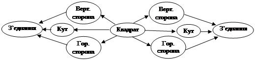 / Реальне вузли звичайно не чіткі / Розрізняють класифікуючи, функціональні мережі та сценарії. класифікуючи СМ задають відношення ієрархії між інформаційними одиницями. функціональні СМ характеризуються функціональними відношеннями, що задають обчислення одних інф. одиниць через інші. у сценаріях використовується відношення „причина – наслідок” 2. Семантичні мережі у пам’яті людини Є ряд свідчень, що знання в людській пам’яті зберігаються у вигляді структур, що нагадують сем. мережі (школа Жана Піаже) Приклад. Дівчинці (3,5 років) показали квадрат, після чого вона намалювала дві фігури: 1) На фігурі 2 вона намалювала „жорсткі речі” (кути), „боковинки” (горизонтальні сторони) й „речі, які йдуть угору” (вертикальні сторони). Цікаво, що сем. мережа квадрату подібна до рис.2 дівчинки.