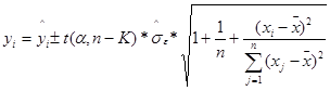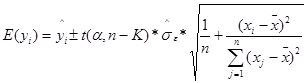 Надійні зони для базисних даних та прогнозні інтервали знаходяться за формулами: а) для окремоно значення y: