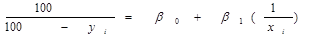 (4,8) (127) а) перевірте значимість нахилу при 5%-ному рівні значимості; б) побудуйте 95%-ний інтервал довіри для нахилу. Завдання 1.9 Припустимо, що в регресії із завдання 1.8 SSE=75, SSR=81. Використайте F-тест для перевірки адекватності регресії. Лабораторна робота № 3 Тема. Парна нелінійна регресія Мета роботи: навчитися будувати парну нелінійну регресійну модель економічних процесів. Завдання1. Виконати завдання для самостійної роботи 3.1. 2. На основі статистичних даних показника Y і фактора X (вихідні дані з л.р.№1) знайти оцінки параметрів лінії регресії, якщо припустити, що стохастична залежність між фактором X і показникомY має визляд однієї з вищерозраховуваних функцій (завдання 1) 3. Використовуючи критерій Фішера з надійністю P=0.95, оцінити адекватність прийнятої моделі статистичним даним. 4. Побудувати ANOVA-таблицю для нелінійної моделі. 5. Якщо з заданою надійністю прийнята модель адекватна експерементальним даним, то знайти: а) з надійністю Р=0.95 довірчу зону базисних даних; б) точкову оцінку прогнозу; в) з надійністю Р=0.95 інтервальну оцінку прогнозу 6. Зробити висновки щодо ступеню апроксимації вихідних даних лініями простої лінійної та нелінійної регресії. 7. Побудувати графіки: а) фактичних даних; б) лінії прямої регресії та її довірчу зону (л.р.№2); в) нелінійної функції та її довірчу зону. Хід роботи1. Зведення кривих зростання до лінійної функції дає змогу оцінити параметри методом 1МНК та використовувати подальший аналіз моделі. Приклад 3.1 Зведення нелінійної парної регресії 2. Вводиться гіпотеза, що між фактором X та показником Y (вихідні ряди даних беруться з л.р.№1) існує нелінійна залежність (завдання 3.1, за вибором). Заміною приводиться нелінійна парна регресія до парної лінійної вигляду: