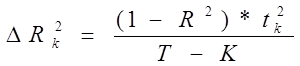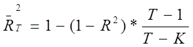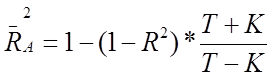 Т – довжина ряду спостережень; К – кількість регресорів; Т-К – кількість ступенів вільності. З двох варіантів регресійних рівнянь, які відрізняються на величину зкоректованого коефіцієнта детермінації, але мають однаково гарні інші критерії якості, обирають варіант з більшим значенням зкоректованого коефіцієнта детермінації. Зкоректований коефіцієнт детермінації за Тейлом: