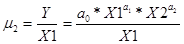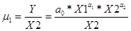 Із зростанням витрат праці (величины Х2) середня продуктивність праці знижується (показник степеню від’ємний). Це зумовлено тим, что кількість засобів праці залишається незмінною, і тому фондоозброєність праці спадає, а разом із нею і продуктивність. Із збільшенням же основних фондів (величины Х1) середня продуктивність праці зростає. Середня фондовіддача: