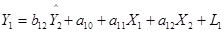 (abc – три останні цифри шифру студента). Інтерпретувати одержані результати та зробити економічні висновки. Лабораторна робота № 6 Тема. Взаємозалежні економетричні моделі Мета роботи: навчитися оцінювати параметри системи взаємозалежних рівнянь. Завдання1. На основі статистичних даних за 10 періодів ендогенних величин: Y1 – експорт, Y2 – імпорт і екзогенних величин: Х1 – національний дохід; Х2 – оборот зовнішньої торгівлі, використовуючи метод 2МНК, оцінити параметри структурної системи регресій:
