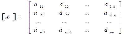 Для розрахунків використати функції СУММ, СРЗНАЧ, СТЕПЕНЬ, КОРЕНЬ, СУММПРОИЗВ, ЧСТРОК. 2) Ознайомитися з можливостями EXCEL при виконанні операцій з матрицями. Використовуючи функції ТРАНСП, МУМНОЖ, МОБОР, виконати дії з матрицями (завдання 1.2). Вихідні дані для розрахунків: матриця в = (12 х 4) y – вектор розмірністю (12 х 1) Для виконання завдання необхідно згадати елементи матричного обчислювання. Елементи лінійної алгебри 1. Матриці При розв’язуванні економічних задач використовуються таблиці значень, системи регресій, які зручно записувати з використанням матричних позначень. Основні визначення Матриці – це прямокутні таблиці елементів, розташованих по рядках та стовпцях: